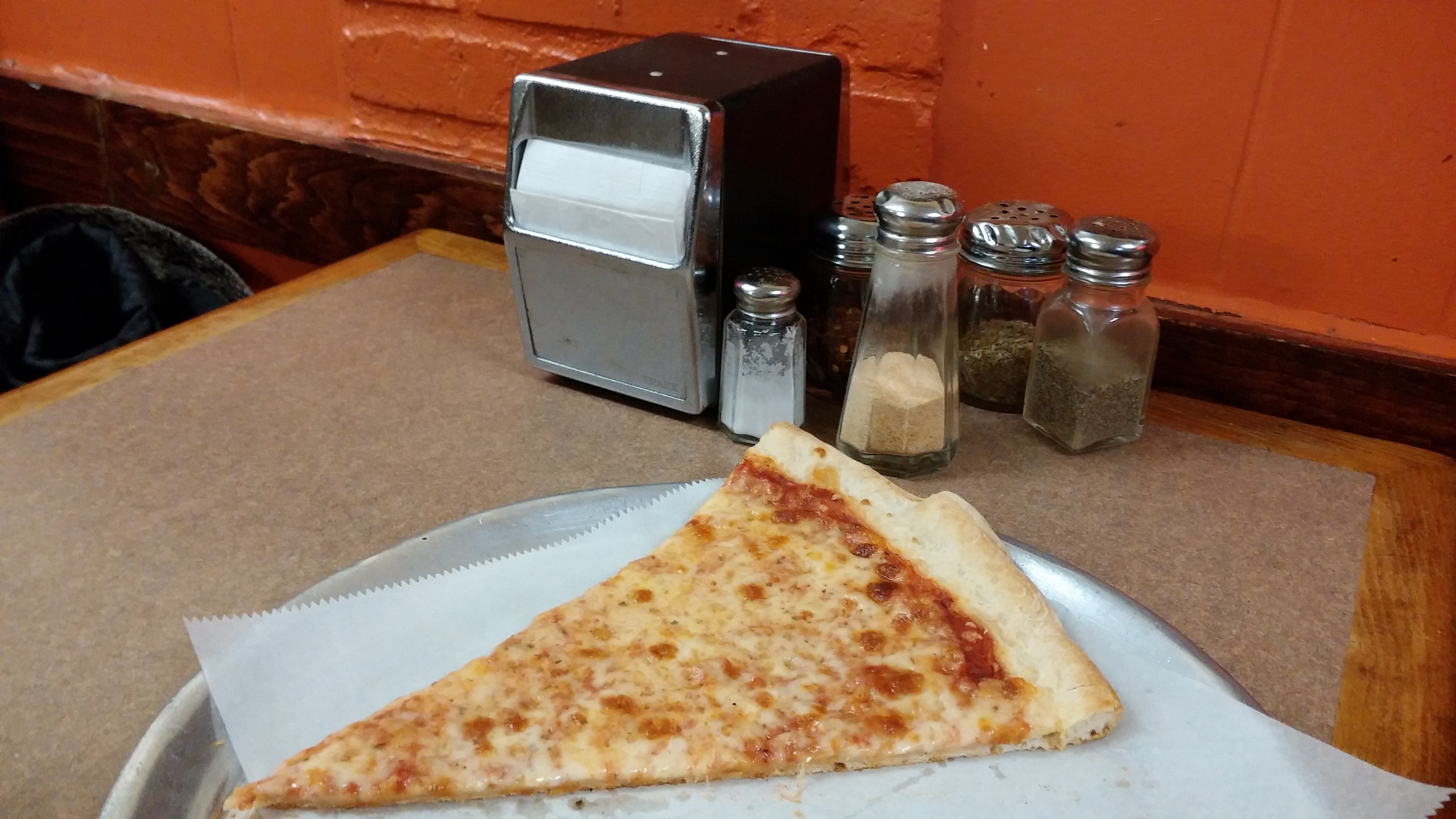 Welcome to the big leagues, in terms of pizza. The classic red awning. The long counter. To-go boxes to the heavens. This IS pizza heaven to many people across Westchester. It’s an established landmark of Mamaroneck since 1964. You’re bound to run into someone you know. There is plenty of seating but that doesn’t mean you are guaranteed to find any empty. Anything here can satisfy the most specific of tastes, but I order the plain slice and pray to the pizza gods for a seat.