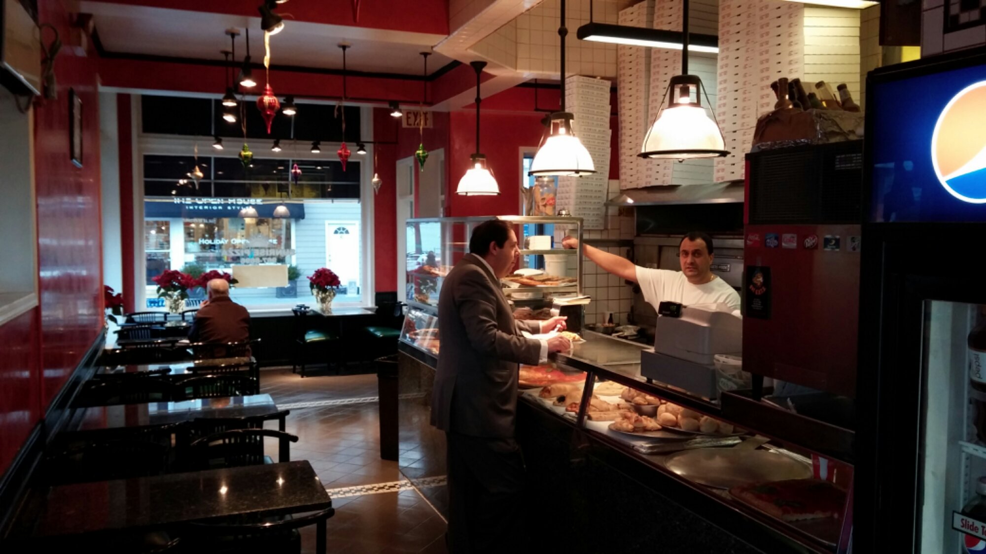 It’s snuggled in-between all the other buildings on Mamaroneck Avenue.  Easy to miss, but just as easy to notice.  Red brick greets you on the outside, which makes you feel like you are stepping into the oven itself.  Plenty of regulars come and go; sports talk being the political conversation of the day.  Forget the knife-and-fork deal: old school decor with small, simple furnishing welcomes you to grab that  quick bite with your buddy.  The people who go there… go There.