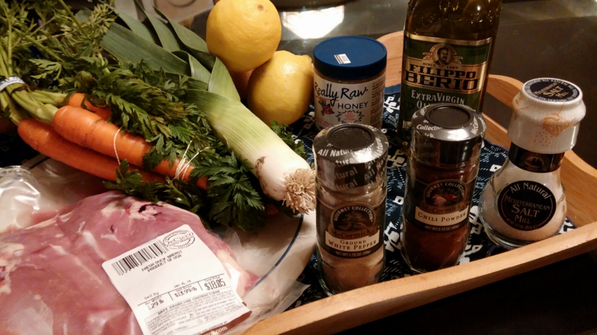 First order of business is preparation of ingredients. I juiced the lemons. I cleaned and cut the carrots and leeks. Leeks need special care for cleaning and cutting so I referred to this youtube video. (http://www.youtube.com/watch?v=R8glwRaS8OM)