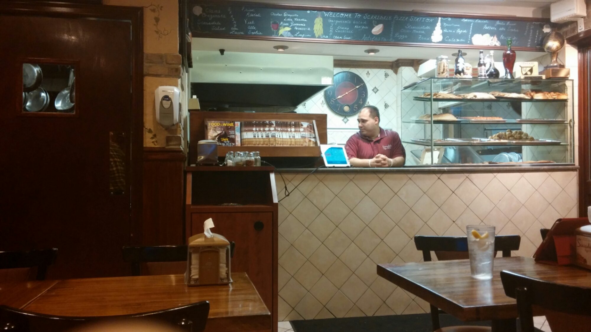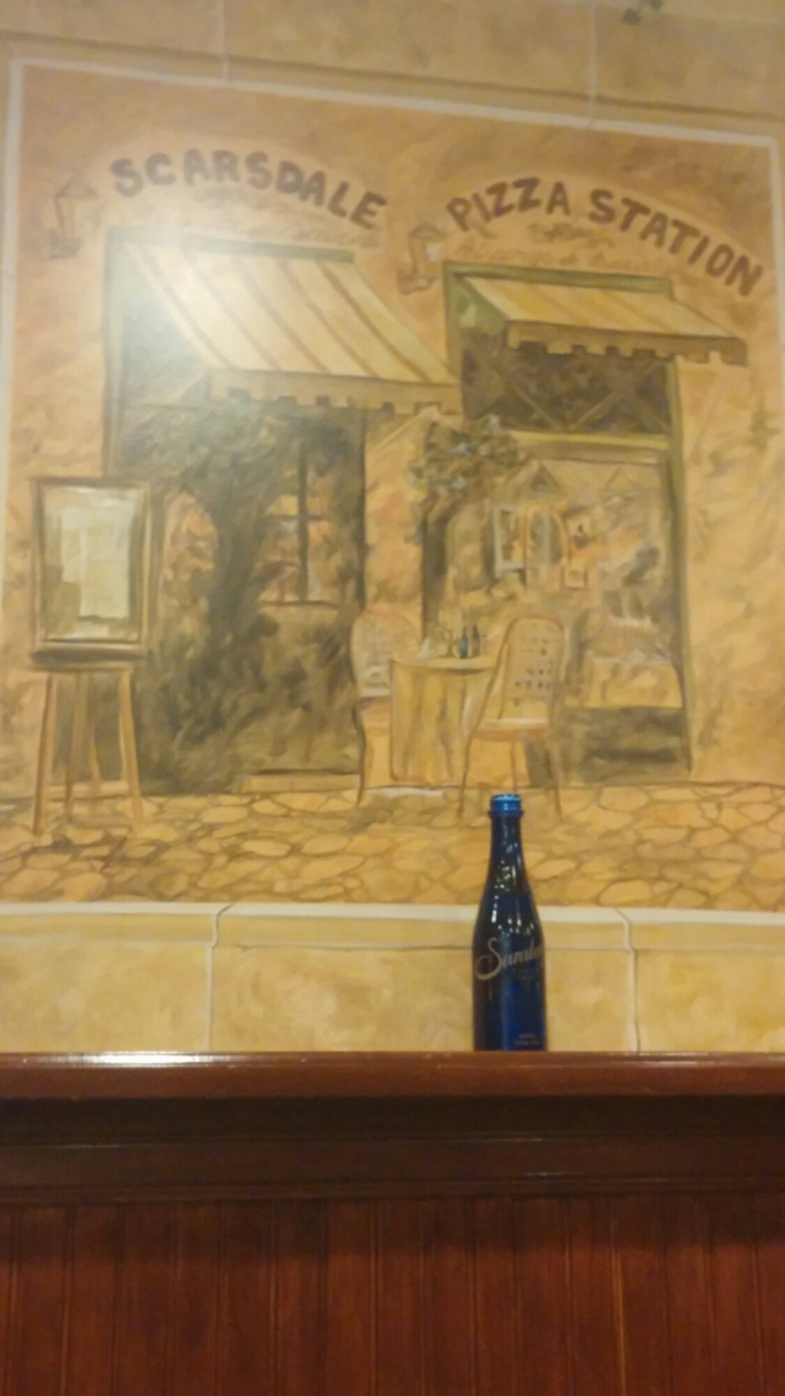Located behind large apartment buildings and right along side the train line, the Scarsdale Pizza Station is a few blocks removed from the town center.  Large stone steps lead up to this small premises.  Dark wood accents with artifacts of restaurant memorabilia scattered around gives it a nice cozy, welcoming atmosphere. The other patrons have to be either family or close friends due to the warm conversation. A nice find in my mind. Hopefully their slice is a nice find for my appetite.